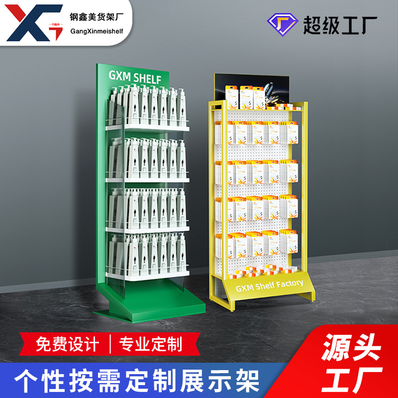 Customized commodity product shelves shopping mall exhibition hall iron wire metal shelves rotating supermarket battery display rack