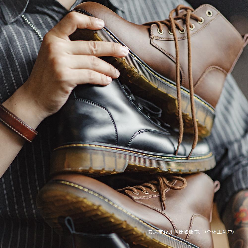 Autumn Martin boots for men mid-cut British style work boots thick-soled high-top boots black genuine leather shoes casual short boots