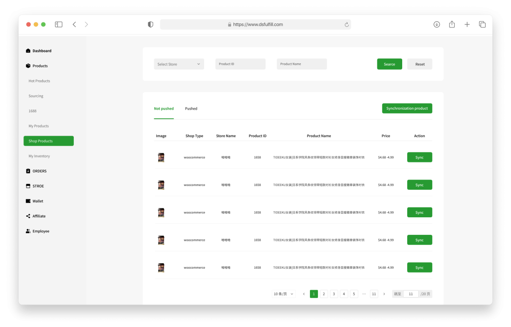 After authorizing Shopify, WooCommerce, TikTok, and other platform stores to the system, subsequent orders will be automatically synchronized to the admin panel. Dropshipping sellers can inquire about product quotes from service providers at any time. Once the quote is confirmed, they can track order fulfillment progress in real time and view logistics updates online.